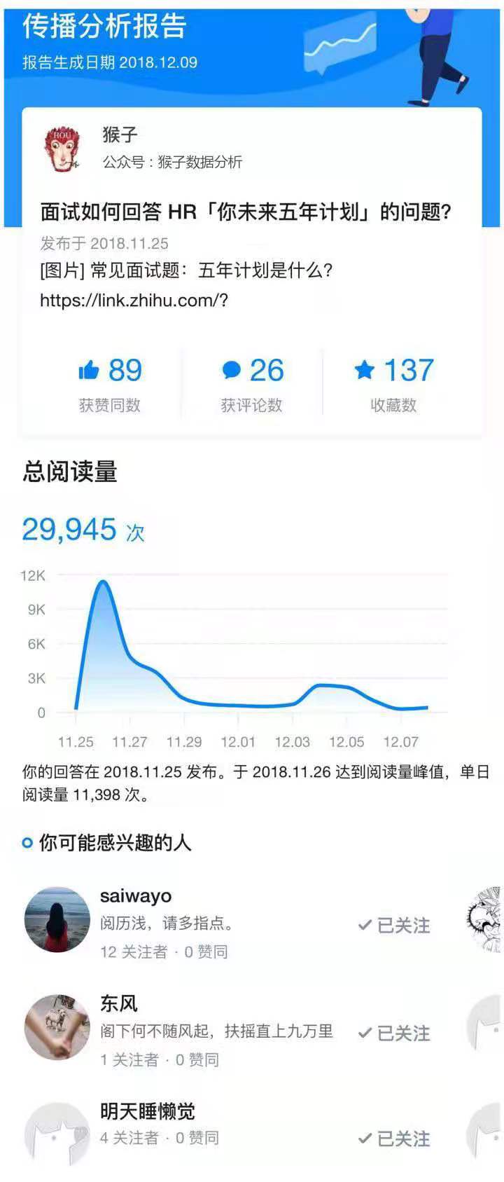 在這份報告中,像點贊數(shù)、評論數(shù)、收藏數(shù)、總閱讀量這樣的分析就是簡單分析。像“你可能感興趣的人”這樣的分析,就是復(fù)雜分析,需要通過機器學(xué)習(xí)算法來找到,類似于豆瓣上給你推薦感興趣的電影、淘寶上給你推薦感興趣的商品。