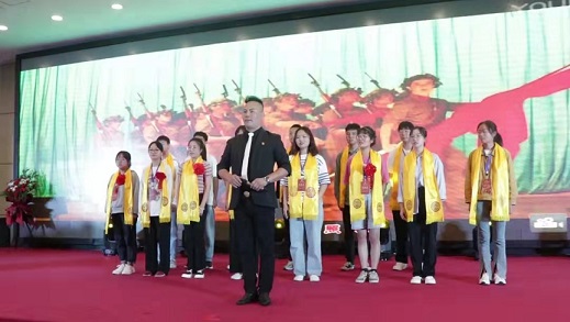 ▲ 黨員孝星曾慶光帶領(lǐng)優(yōu)秀學(xué)子唱紅歌