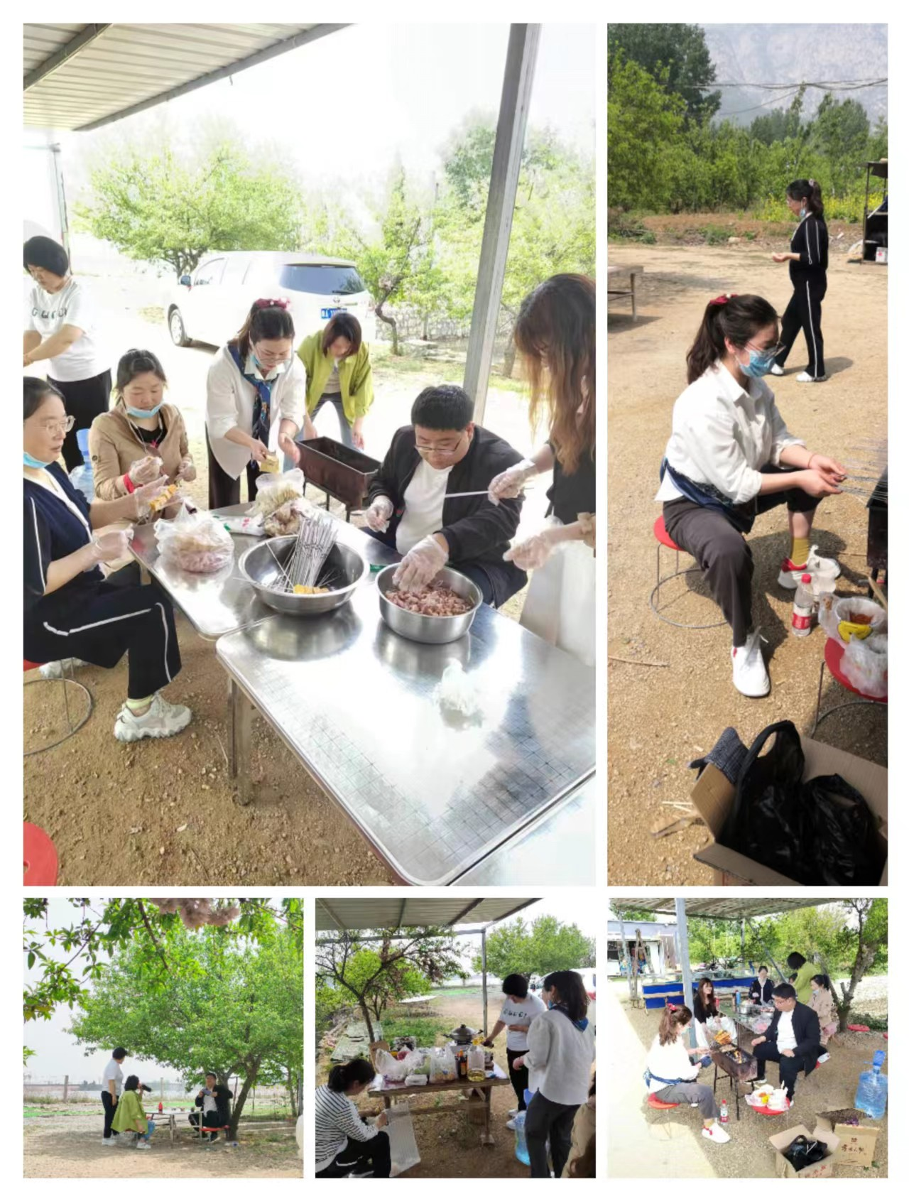 首先,映入我們眼簾的是碧波蕩漾,波光粼粼,山清水秀;在這景色迷人的環(huán)境中,我們的身心徹底放松,開始了準備工作:穿串、燒火、烤串,每個人都積極的行動著,雖然我們分工不同,但是都為了一個共同的目標??吹竭@樣的場面倍感親切,雖然是一個團體,但更像一家人。