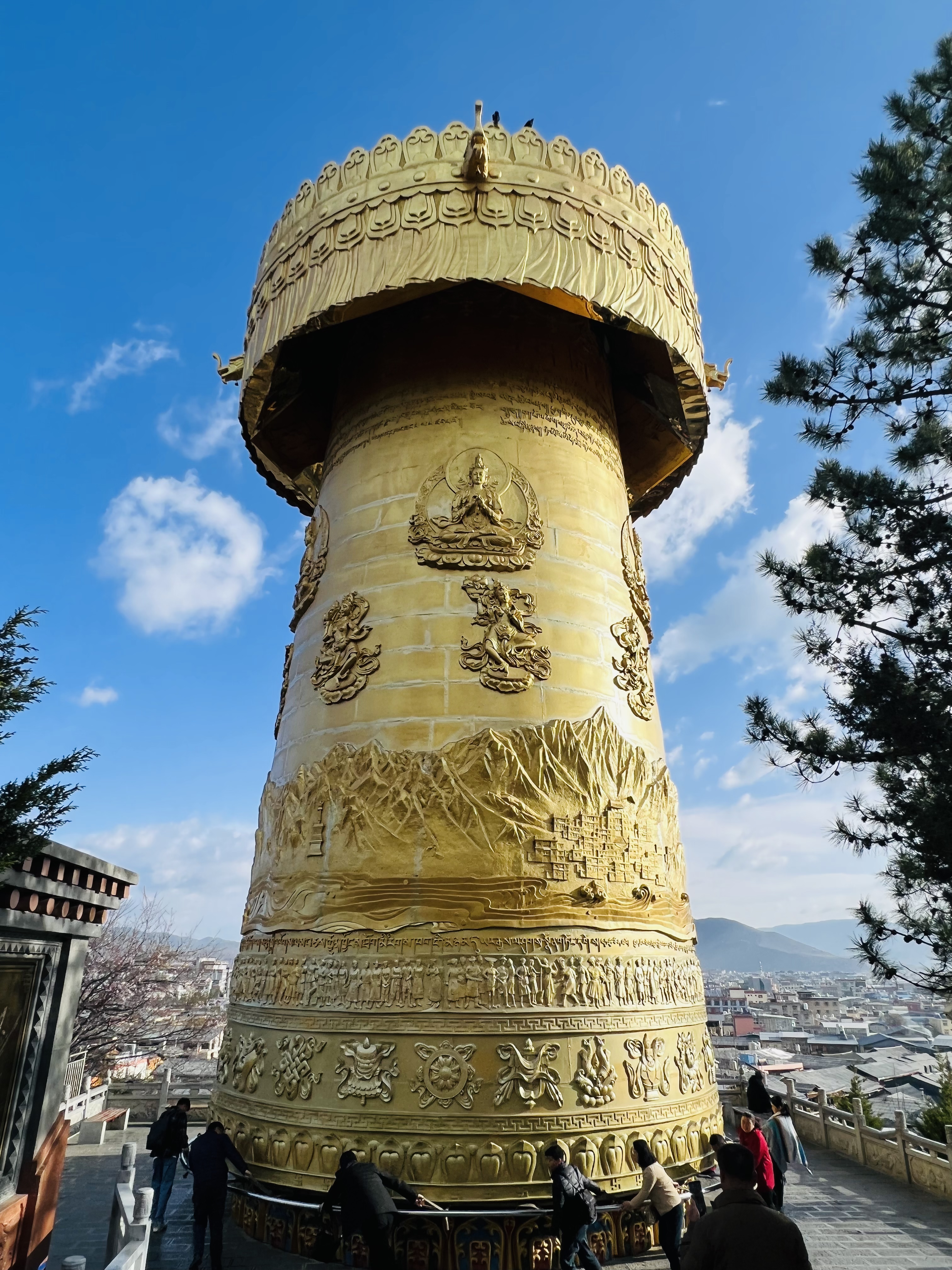 接下來,團隊抵達了香格里拉獨克宗古城里的大佛寺。在這里,員工們參觀了寺廟和轉經筒,這是一個充滿宗教色彩的地方,轉經筒的轉動寓意著祈福和消災。員工們在這里虔誠地祈禱,希望自己和家人都能平安幸福。