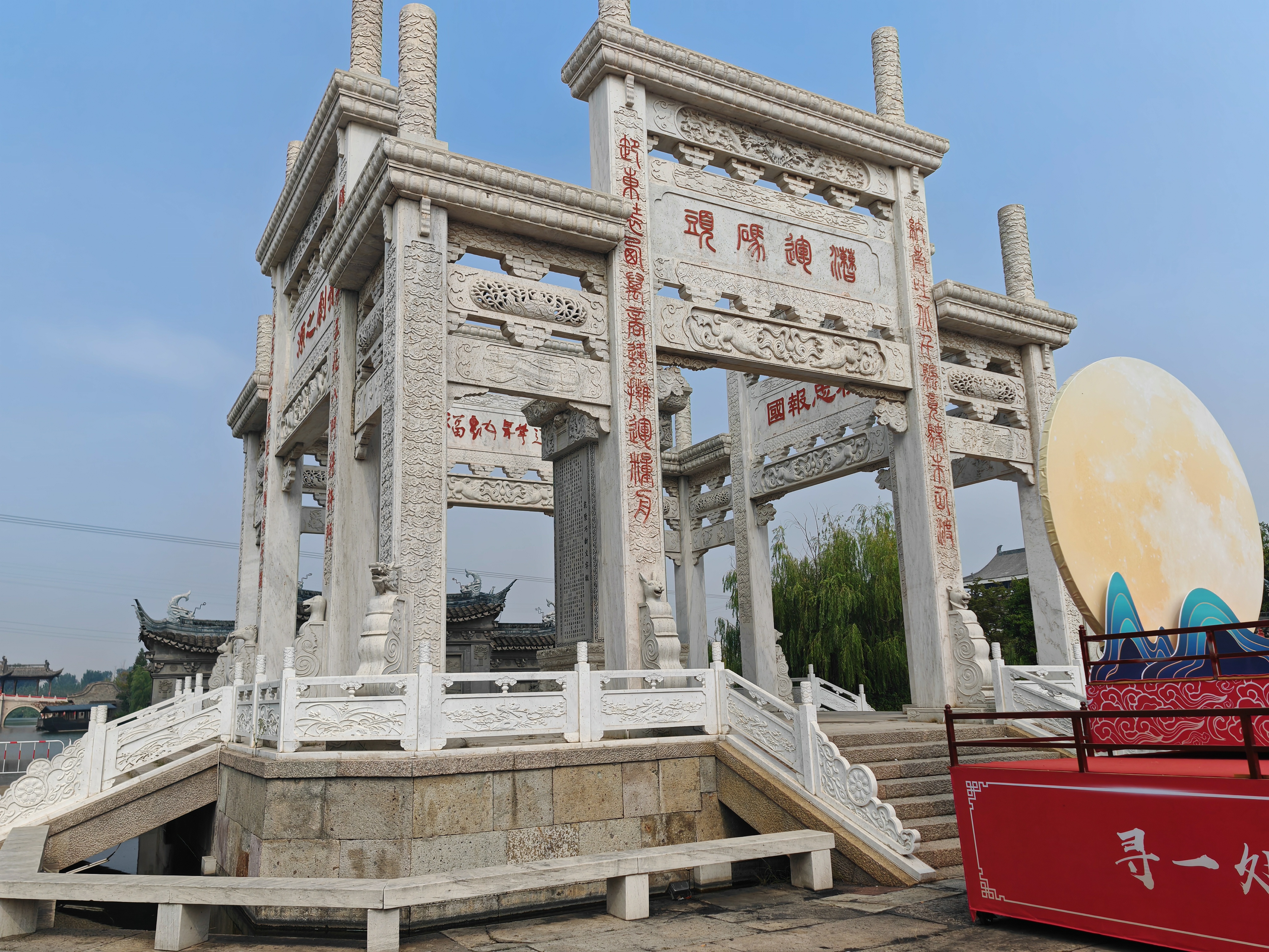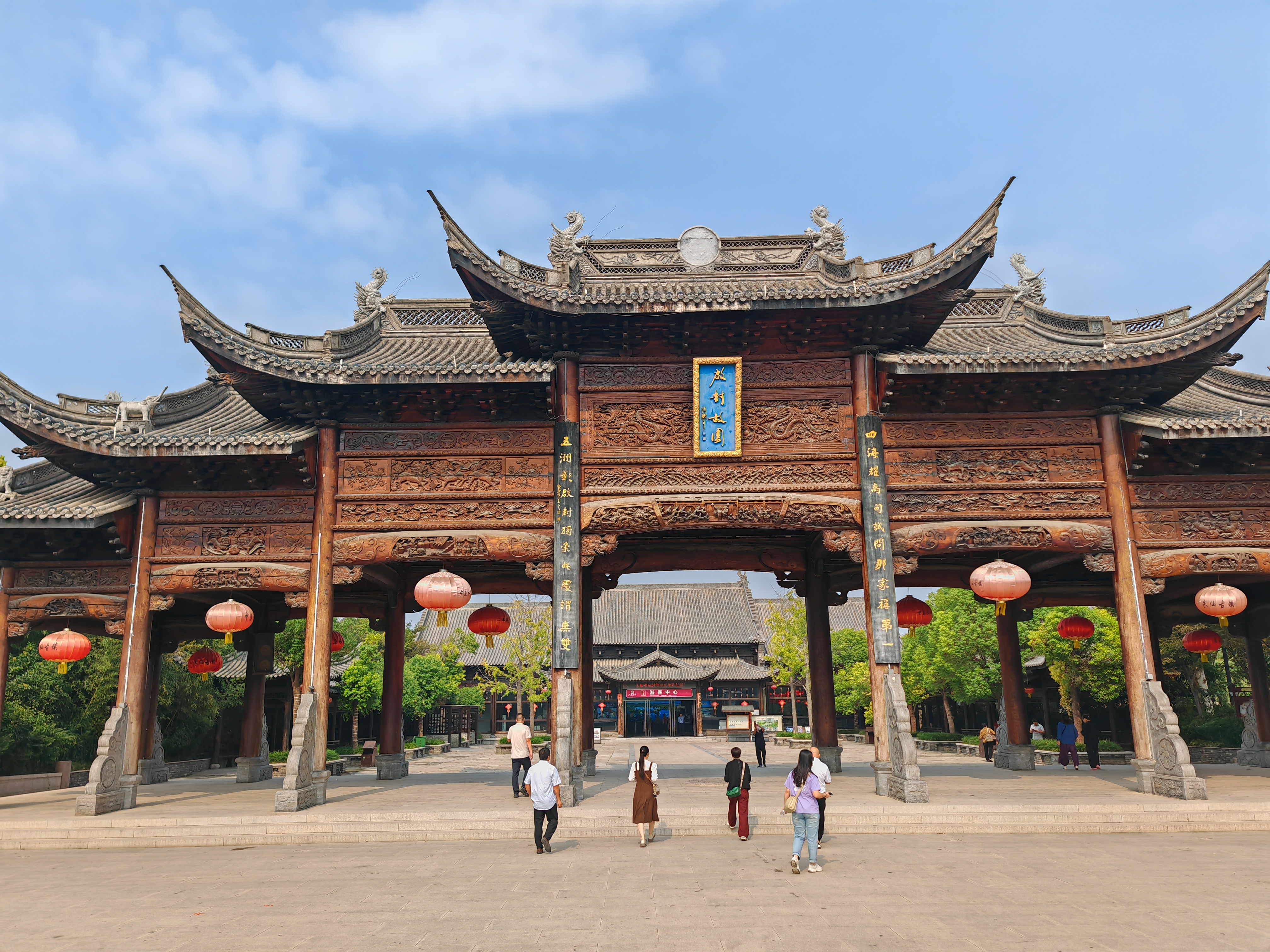 我們下車后,在正門一座雕有開封八朝古都各個朝代重大歷史事件的牌樓前進(jìn)行合影留念。